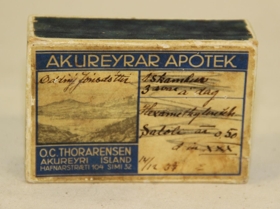 Go Back To SearchPrintAkureyrarapótekPlaceNúverandi sveitarfélag: Akureyrarbær, Akureyrarbær Sveitarfélag 1950: AkureyriRelated objectsLyfjaglas, f. lyf til dýral.National Museum of IcelandLyfjasuðupottur1829Akureyri MuseumUmslagNational Museum of IcelandFlaska, f. vökvaNational Museum of IcelandFlaska, f. vökva1950 - 1979National Museum of IcelandLyfjaflaska, f. lyf til mannal.1965Industry MuseumMeðalakassi1937Industry MuseumMeðalaflaska1972Industry MuseumMeðalaflaska1972Industry MuseumFlaska, f. lyf fólks1980Industry MuseumFlaska, f. lyf fólks1980Industry MuseumJarðaberjaessensIndustry MuseumView all collection objects
