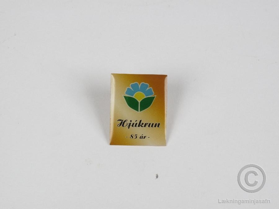 Hátiðarmerki FÍH (Félag ísl. hjúkrunarfræðinga) Merki gefið út á 85 ára afmæli félagsins 2004 2,5x2 cm. Gulur grunnur með merkið í miðju.