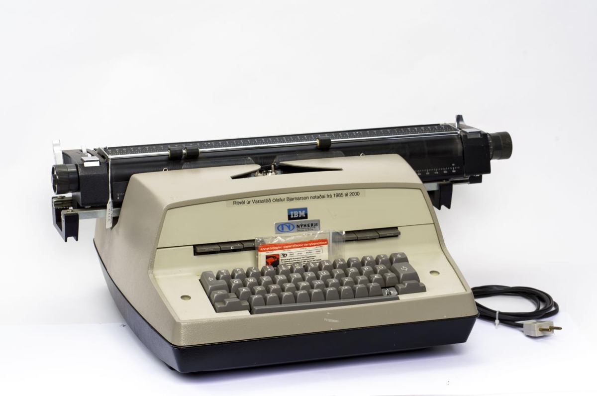Ritvél með hefðbundnu lyklaborði og lítið af aukatökkum. Pappírssleðinn er fremur breiður, líklega fyrir blaðastærð A3. Vélinni fylgja rafmagnssnúra, plastábreiða og leiðréttingamiðar. (Tipp-Ex) sem notaðir voru til að hvítta yfir innsláttarvillur.