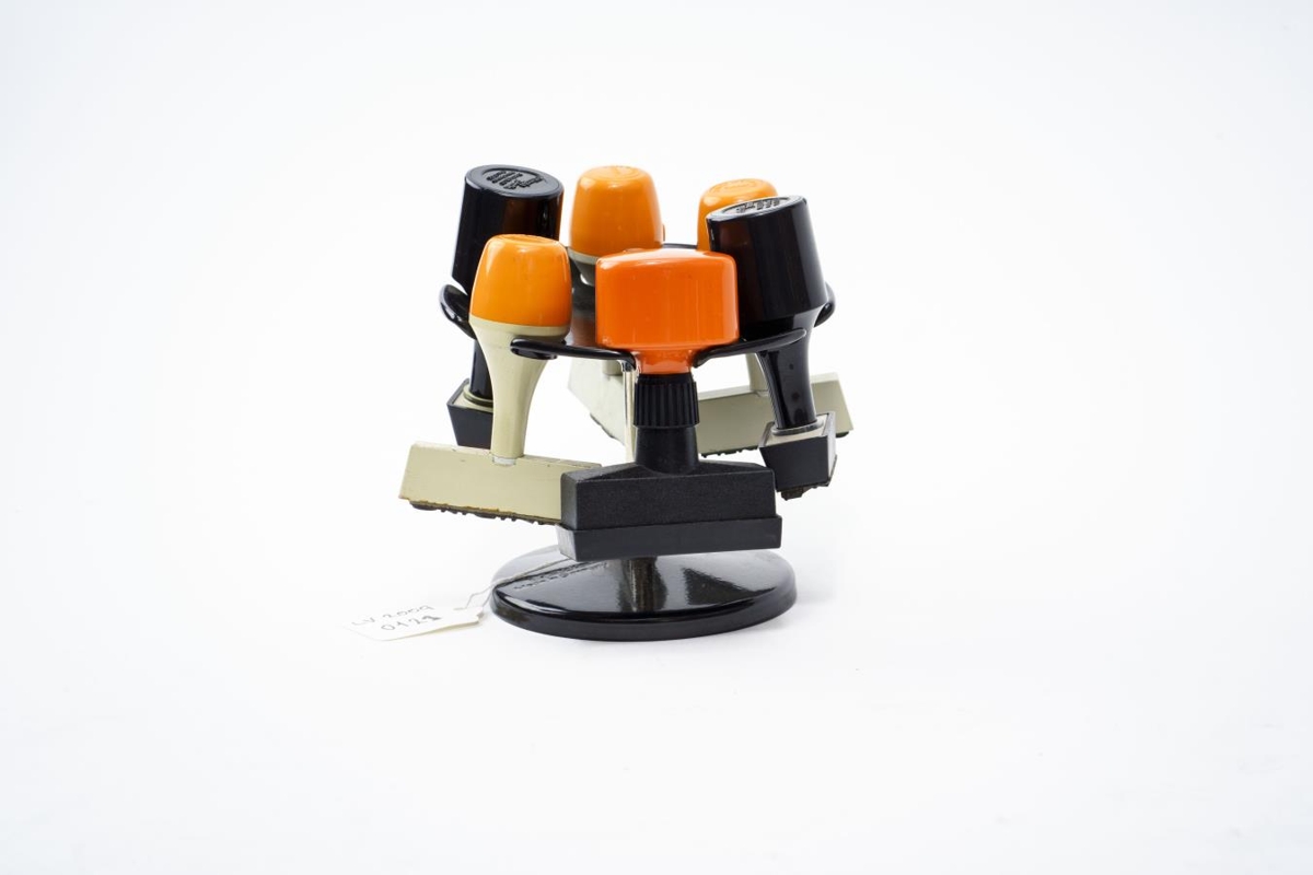 Kringlóttur stimplastandur sem sex stimplar hanga á. Uppgefin mál eru heildarmál settsins.