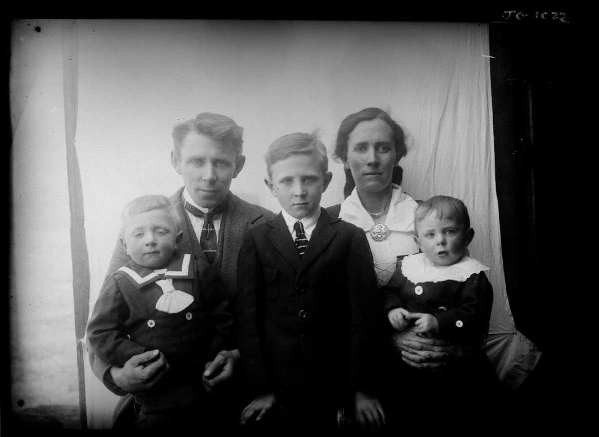 Erfitt að staðsetja hann, fór á milli og smíðaði m.a. Kvennabrekkukirkju 1923-25 og myndin líklega tekin á þeim tíma miðað við börnin. Kemur 1923 að Svalbarða í Miðdölum til að byggja Kvennabrekkukirkju og er þar í eitt ár. Þriðji sonurinn fæðist í ágúst 1923 og myndin líklega tekin 1924-1925 og þá eru þau til heimilis á Svalbarða í Miðdalahreppi.
