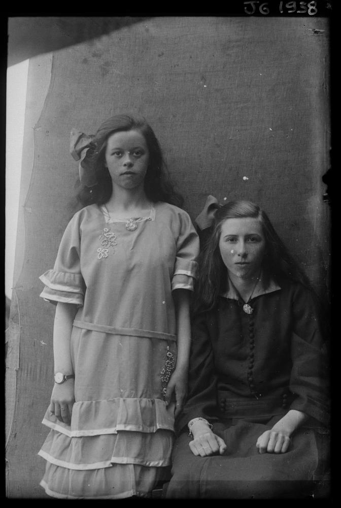 Tvær unglingsstúlkur. 2 Fríða Þorgilsdóttir, Knarrarhöfn og Jófríður Kristjánsdóttir, Breiðabólstað.