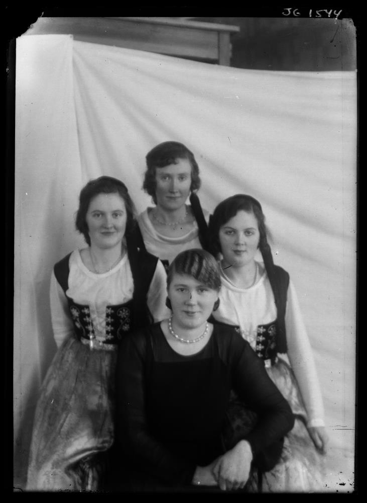 4 Talið f.v. Ragnheiður Jónsdóttir, Ljárskógum, Guðlaug Tómasdóttir, Lambastöðum, Jófríður Jónsdóttir, Ljárskógum, ? Hermannsdóttir, Ysta-Mó, Fljótum, fremst.