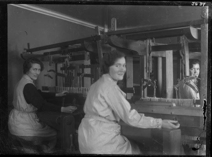 3 Nemendur Staðarfellsskóla, í vefstofu: Guðfinna Hannesdóttir, Hólum Stokkseyrarhreppi, ? , Ása Björnsdóttir, Þorbergsstöðum.