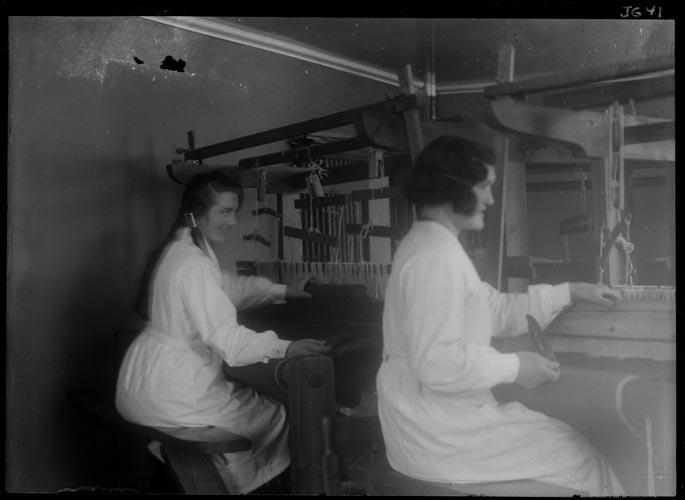 vefnað. Ása Björnsdóttir, Þorbergsstöðum, t.h., Guðfinna Hannesdóttir,