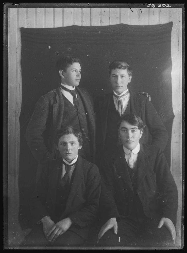 4 Hópmynd 4 saman: Geir Sigurðsson, Skerðingsstöðum, Guðmundur Á. Blöndal, Litlaholti, Hallgrímur Jónsson, Ljárskógum, og einn óþekktur.