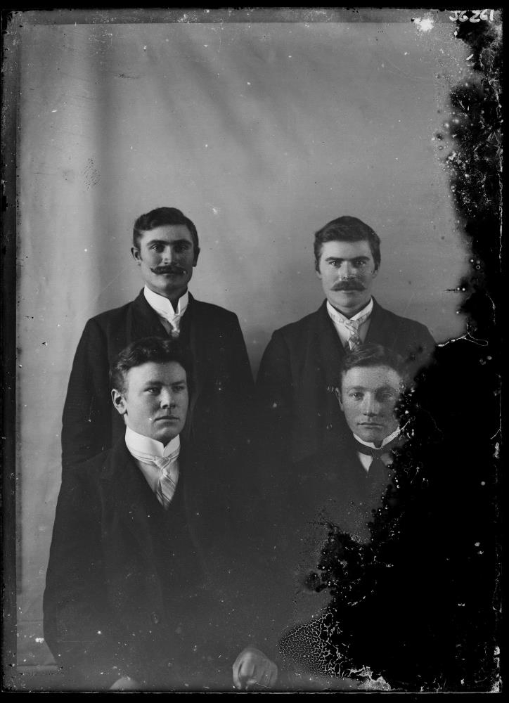 Hjarðarholtsskóli 1911-1912: Björn Cýrusson, Hömrum, Eyjólfur Jónasson, Sólheimum, Guðbrandur Jónasson, Sólheimum, situr, Sigurður Benediktsson, Sauðhúsum.