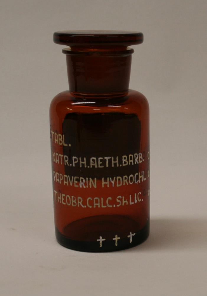 Í þessu glasi voru geymdar töflur sem framleiddar voru í apótekinu, en ekki samkvæmt staðlaðri forskrift.
