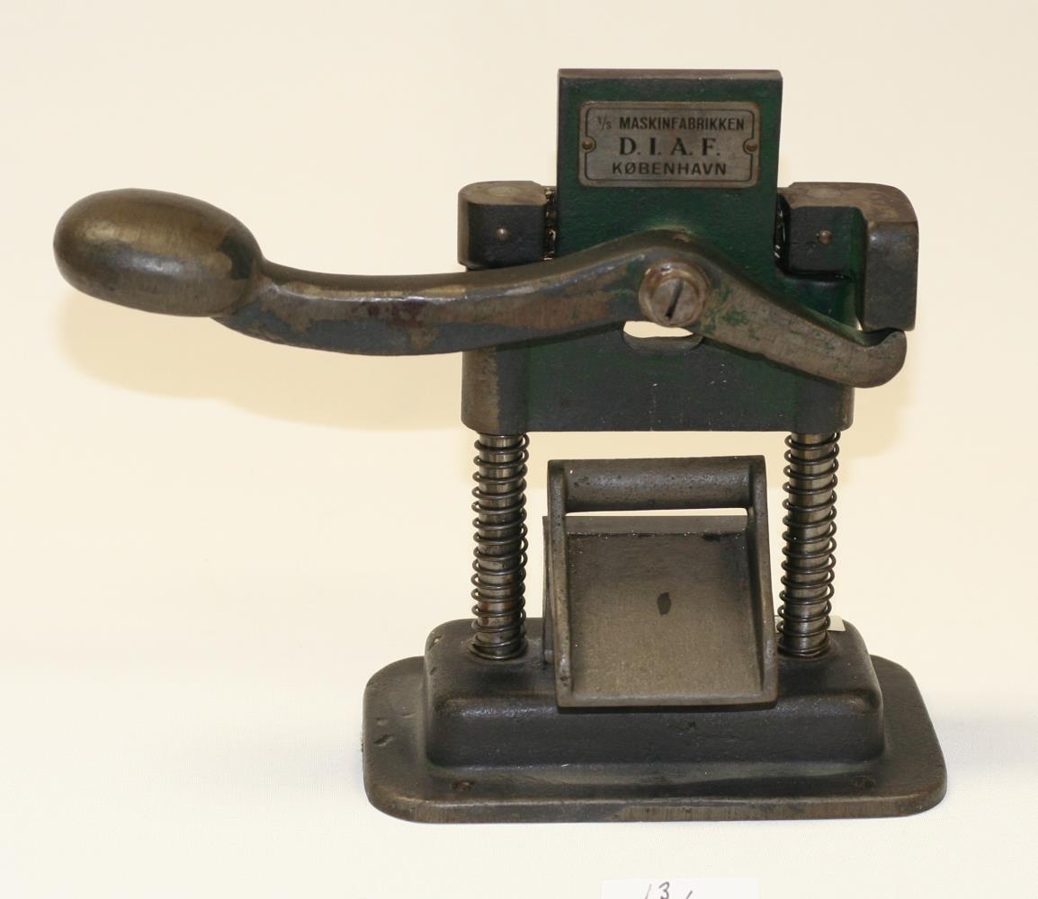 MASKINFABRIKKEN D.I.A.F. Í KÖBENHAVN. Hann var skrúfaður fastur í borð