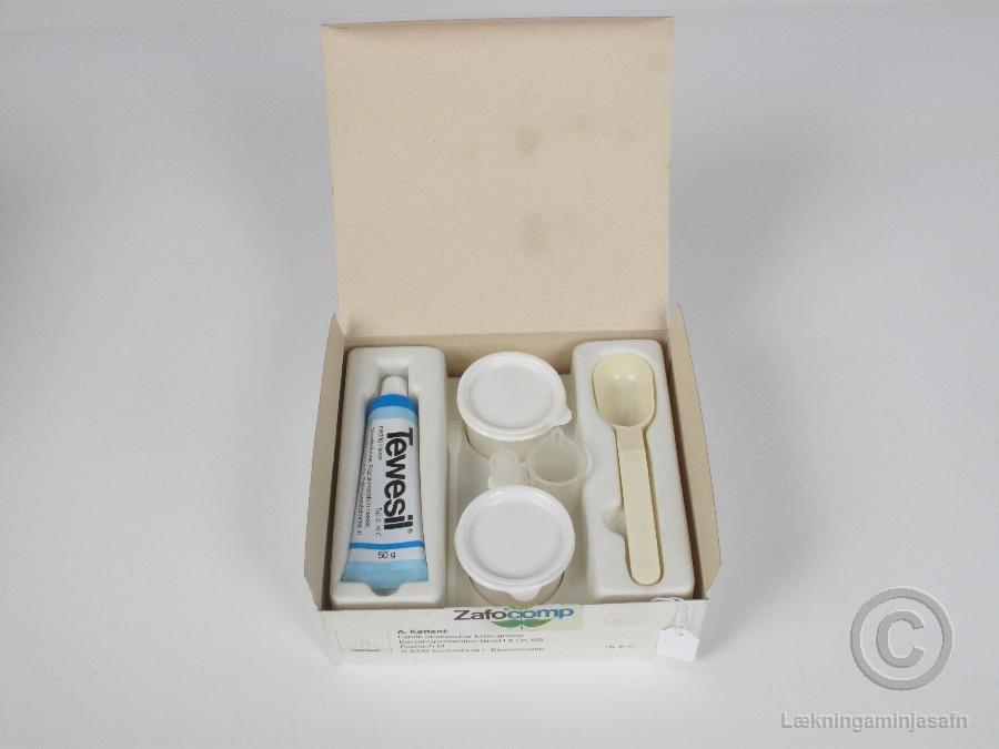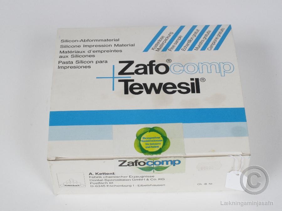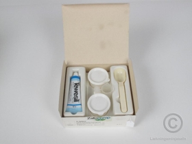 Tveim plastglösum með loki sem innihalda sílíkon, einni plastskeið, 10 ml. mæliglasi, tannmóti sem er merkt 48, litlausum herði í plastglasi, plastspaða og loks 50 gr. áltúbu sem inniheldur þunnfljótandi sílíkon sem hefur söluheitið "Tewesil" (fyllingarefni - "Präzisionabformmasse").