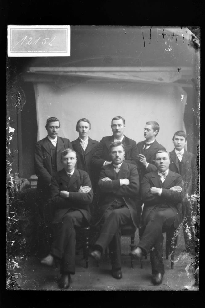 8 saman. Hópmynd. Aftari röð: Jón Straumfjörð, Guðjón Jónsson, Matthías Mathiesen, skósmiður, Moritz Biering og Ármann Eyjólfsson. Fremri röð. Tómas Snorrason, Magnús Gunnarsson og Guðjón Jónsson frá Eyrarbakka. Lærlingar hjá Matthíasi skósmið Mathiesen.