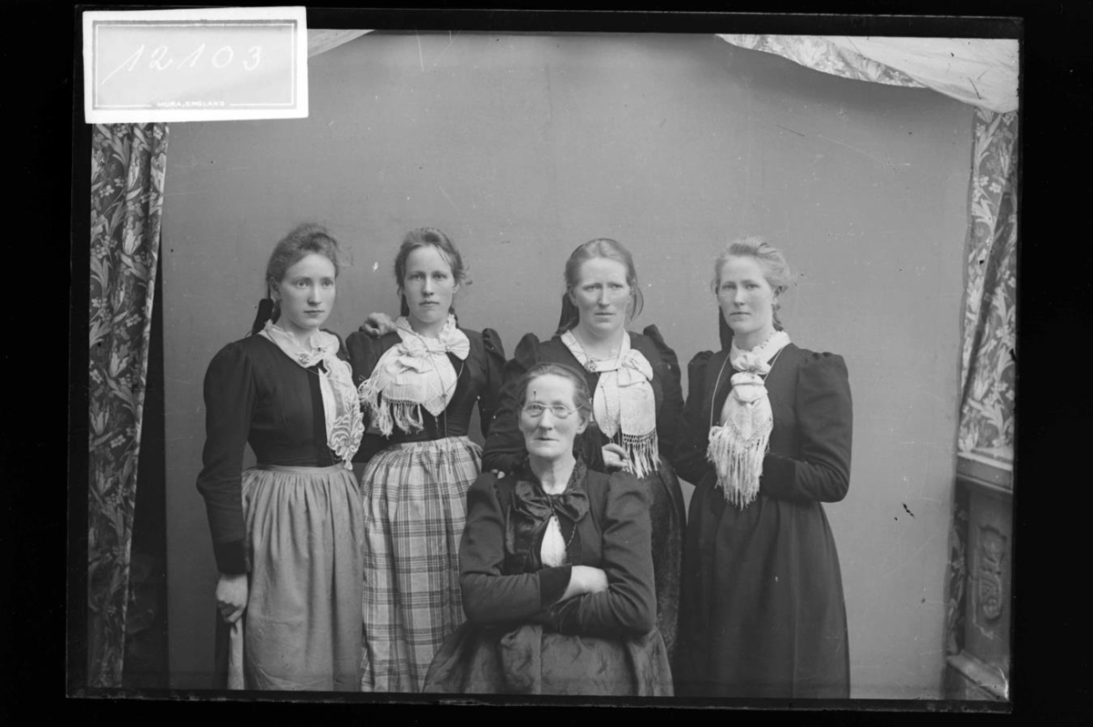 5 saman. Guðlaug Þórðardóttir, k. Ólafs í Sumarliðabæ og d. þeirra. Frá vinstri Ágústa, dó ung, Kristín yngri g. Þorsteini Bjarnasyni, Kristín eldri g. Jónasi bónda í Sólheimatungu og Guðlaug g. Jóni Jónss. Árbæ, Rang.