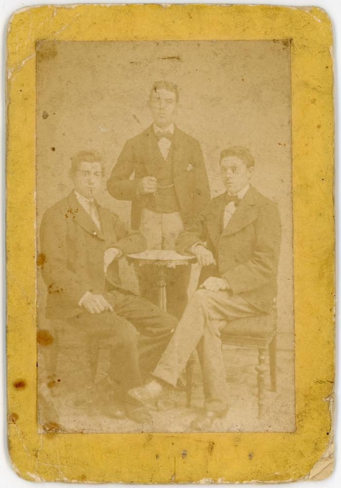 3 saman. Frá vinstri Matthías Matthíasson, kaupm. í Holti, Rvík, og bræðurnir, Oddleifur, verslm. og Þorvarður, prestur að Stað í Súgandafirði, synir Brynjúlfs, bókbindara í Rvík, Oddsonar.