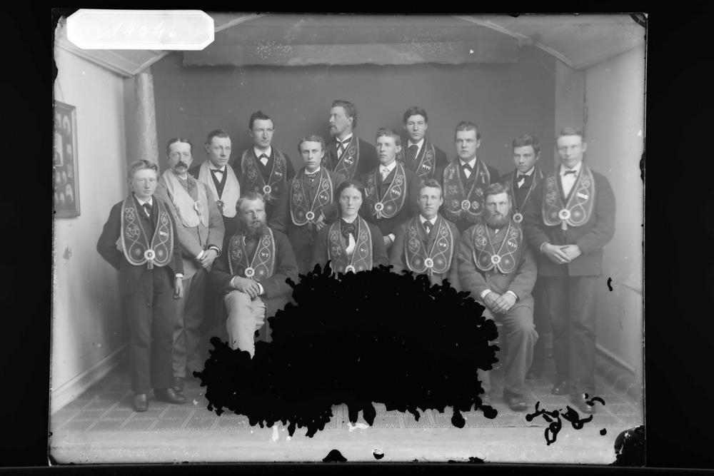 Hópmynd af Góðtemplurum á stórstúkuþingi í Reykjavík 1901, með einkenni: Jakob Jónsson verslunarmaður, Þorlákur Ó Johnsen kaupmaður, Björn Kristjánsson? kaupmaður, Guðlaugur Guðmundsson?, Magnús Zakaríasson, Jón Ólafsson ritstjóri, Oddur Björnsson prentsmiðjustjóri, Konrad Maurer, Þorvarður Þorvarðarson, Jónas Jónsson („Máni“), Schou steinhöggvari, Guðrún Guðmundsdóttir í Gróubæ, Árni Eiríksson kaupmaður og Helgi Teitsson.