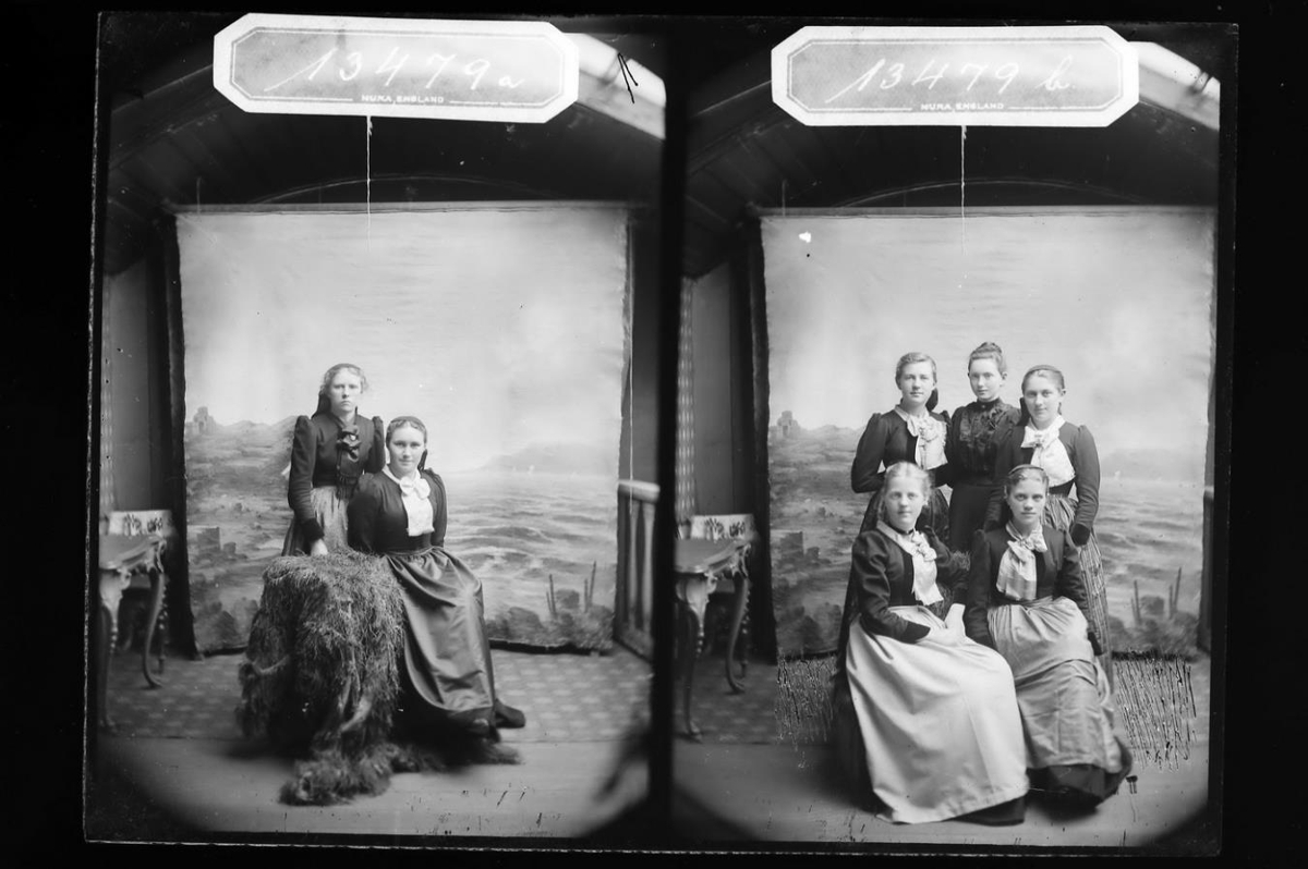 „Stúlkan sem um ræðir er sú sem situr t.h. Síra Sveinn Eiríksson í Ásum í Skaftártungu og kona hans Guðríður Pálsdóttir prófasts Pálssonar í Hörgsdal áttu mörg börn, þar á meðal dæturnar Guðríði (1877-1945)) og Ragnhildi (1884-1969). Þóra frænka nefndi ekki Guðríði en sagði að stúlkan sem sæti t.h. væri Ragnhildur Sveinsdóttir. Önnur mynd af Ragnhildi ungri má finna í Sarpi. Þar er hún með frænku sinni Guðlaugu Halldórsdóttur frá Suður-Vík í Mýrdal. Þóra frænka átti einnig eintak af þessari mynd og er það nú í mínum fórum eins og myndin af Prestafélaginu.“ (SP 2018)