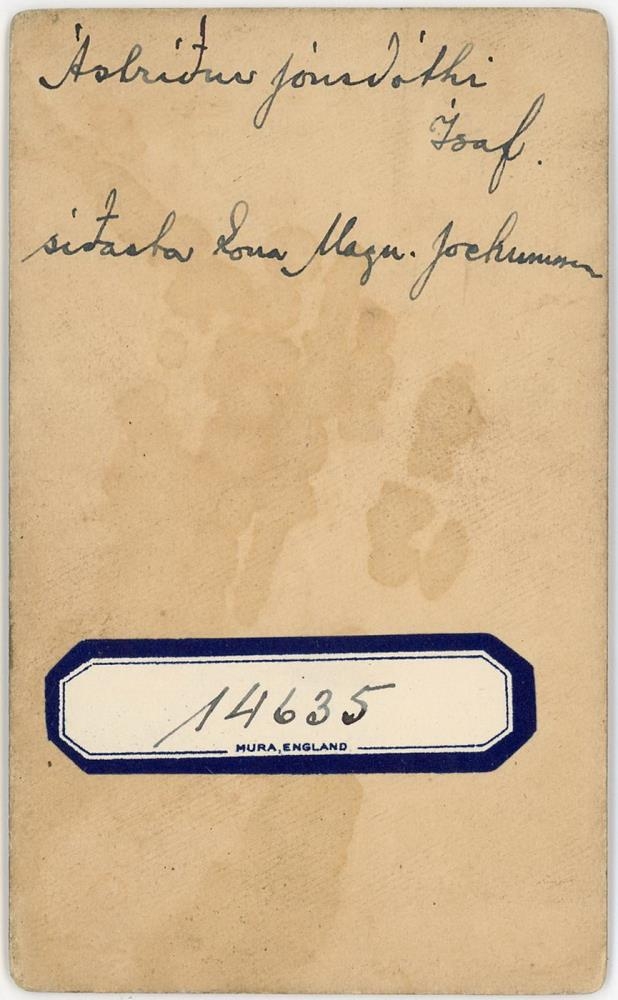 Ástríður Jónsdóttir frá Sveinseyri í Dýrafirði. Maður hennar var Magnús Jochumsson kaupmaður á Ísafirði. Ástríður var þriðja og síðasta kona hans.