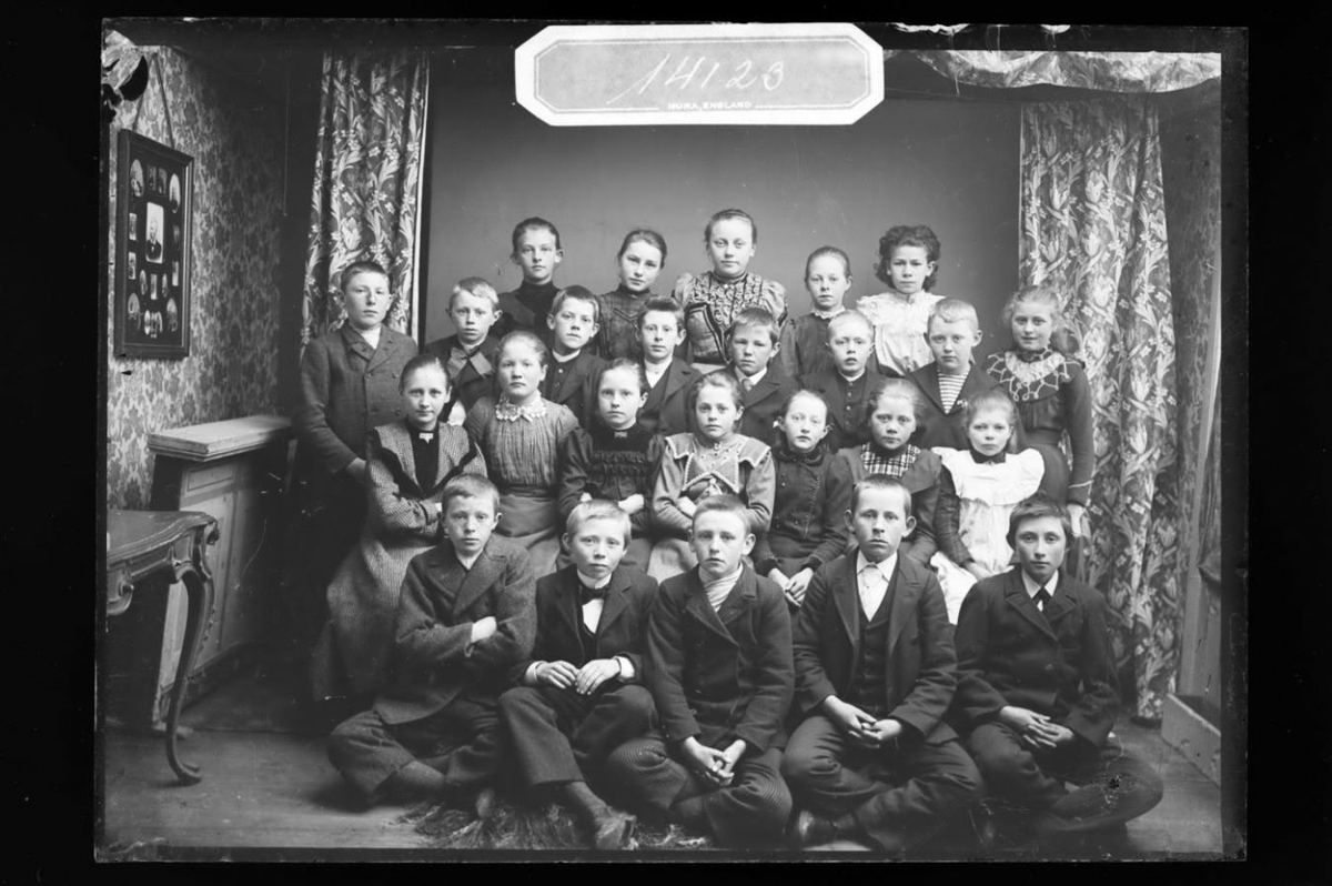 Hópmynd úr barnaskóla í Reykjavík: Guðríður Guðmundsdóttir, Guðlaug Magnúsdóttir, Elísabet Halldórsdóttir, Guðrún Þorkelsdóttir, Ragna Bertelsen, Sigurjón Pétursson, Jón Halldórsson, Viggó Björnsson, Jón Sívertsen, ?, Halldór Kristinsson, Geir Thorsteinsson, Sigríður Blöndahl gift Fjeldsted, Ásta Ólafsdóttir (systir Georgs), Helga Jónasdóttir, Sigríður Zoëga, Svafa Þórhallsdóttir, Sigrún Jóhannesdóttir, Martha Indriðadóttir, ?, Bjarni Snæbjörnsson, Ásmundur Guðmundsson, ?, Kornelíus Sigmundsson og Ólafur Einarsson sjómaður.