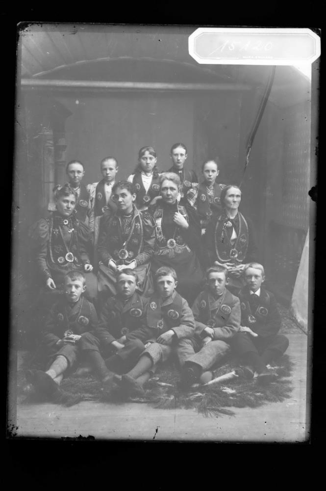 Hópmynd af stofnendum „Hvíta-bandsins“ Efsta röð: Kristín Magnúsdóttir (gift Thorberg), Anna Benediktsdóttir, Valgerður Þórðardóttir, Guðrún Pálsdóttir (gift í Ameríku) og Vigdís Torfadóttir, Miðröð: Miss Pratt, Miss Schaffner, Miss Ackermann, Margrét Pálsdóttir. Fremsta röð: Þorvaldur Sigurðsson (fangavarðar) og Lúðvik Andersen.