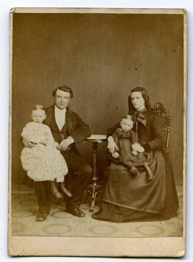 Oddur Gíslason, prestur í Grindavík, kona hans, Anna Vilhjálmsdóttir frá Kirkjuvogi og 2 börn þeirra, Vilhelmína Þórunn f. 1872 og Rósa Aldís f. 1874.