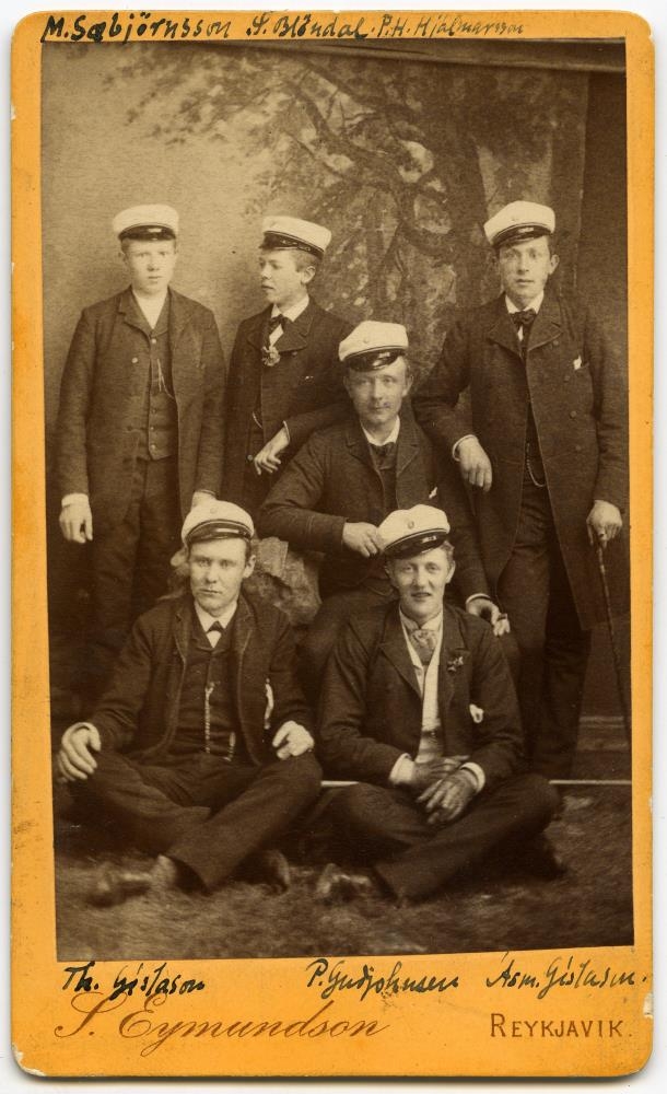 Magnús Sæbjörnsson, Sigfús Blöndal, Pétur Helgi Hjálmarssonm Þorsteinn Gíslason, Pétur Gudjohnsen, Ásmundur Gíslason, stúdentamynd frá Reykjavík 1892.