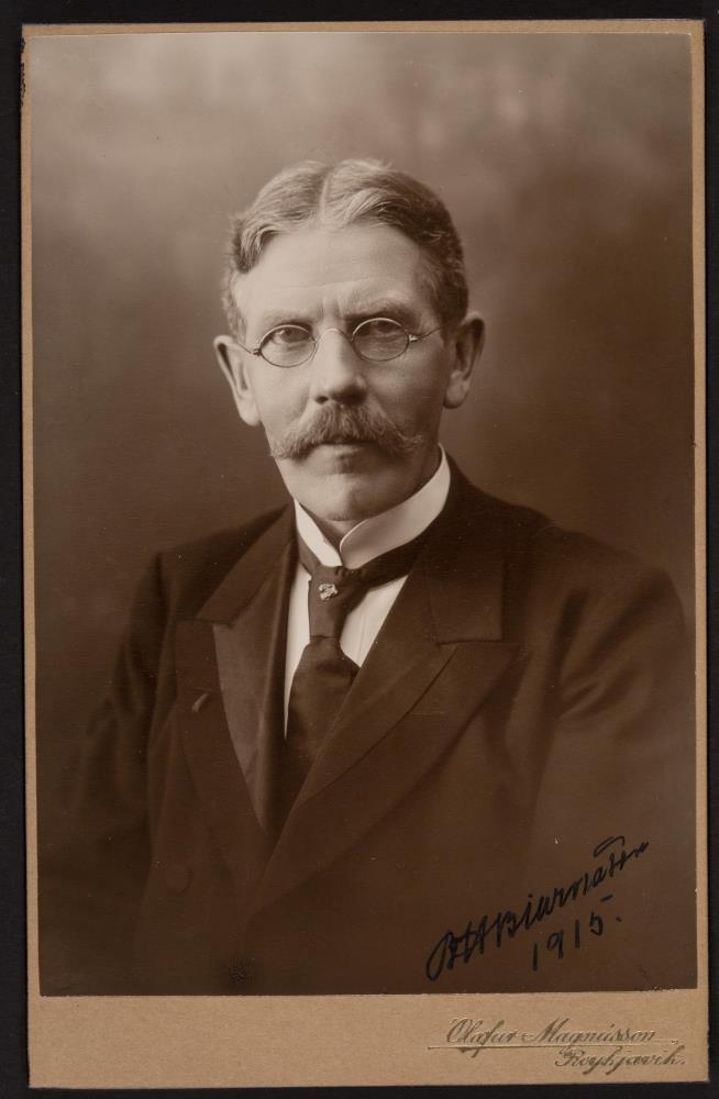 Nr. 1695-1696. Ljósmyndir 2 af gefanda ("kab." stærð; frá 1900 og 1915). Þessar myndir og margar er síðan hafa komið til safnsins, eru sendar því eptir áskorun (prentuðu brjefi) frá forstöðumanni þess.