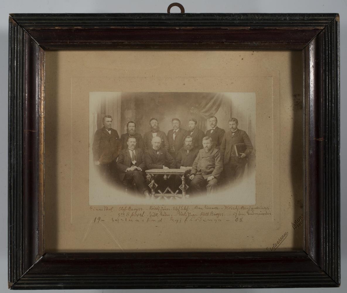 Ljósm. á spjaldi, í strikheflaðri, brúnleitri umgerð; 26,4 x 21,8 cm: Sýslunefnd Eyfirðinga 1908;