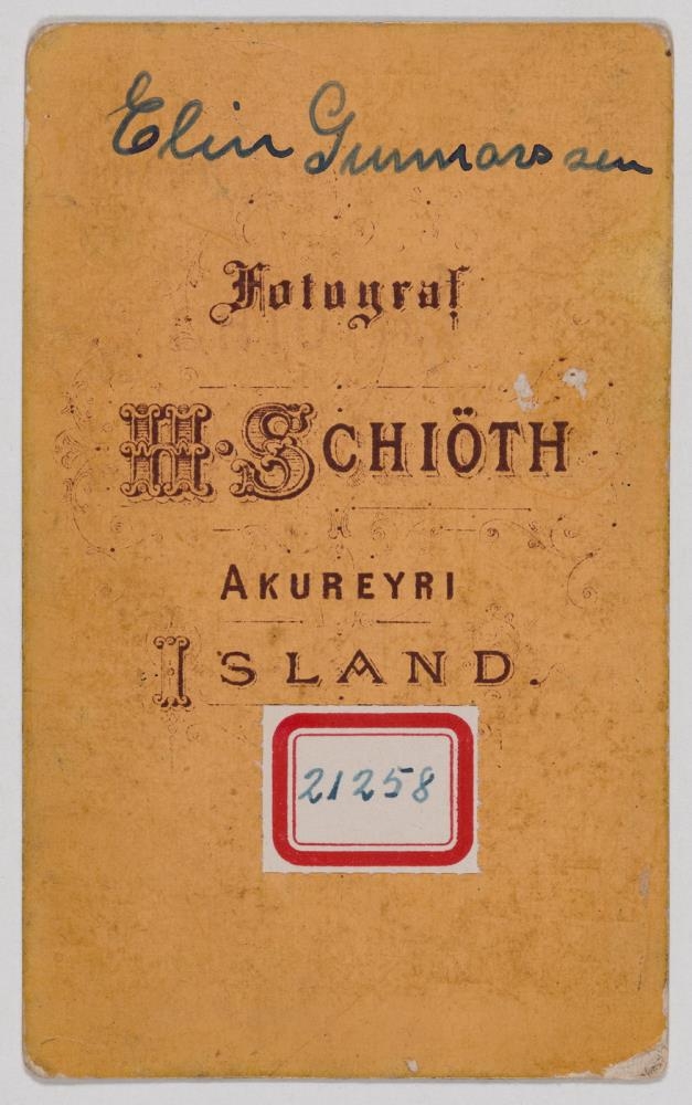 Ljósmynd, vis.: Elín Gunnarsson (líklega kona Eggerts Gunnarssonar). Óvíst að þetta sé sú kona.