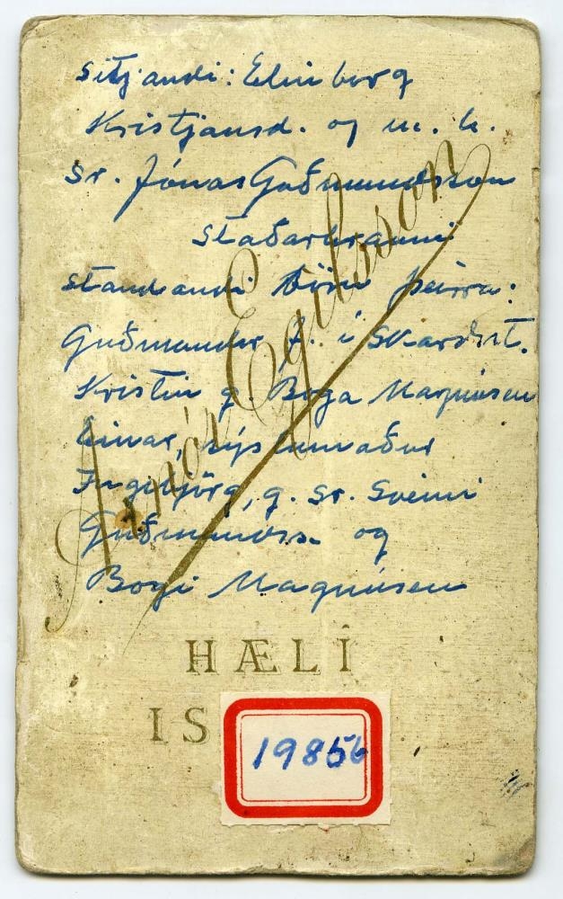 Hópmynd: Sitjandi hjónin séra Jónas Guðmundsson á Staðarhrauni og Elínborg Kristjánsdóttir; standandi börn þeirra: Guðmundur kaupmaður í Skarðsstöð, Kristín, gift Boga Magnúsen, Einar sýslumaður, Ingibjörg, gift séra Sveini Guðmundssyni í Árnesi og tengdasonur Bogi Magnúsen.