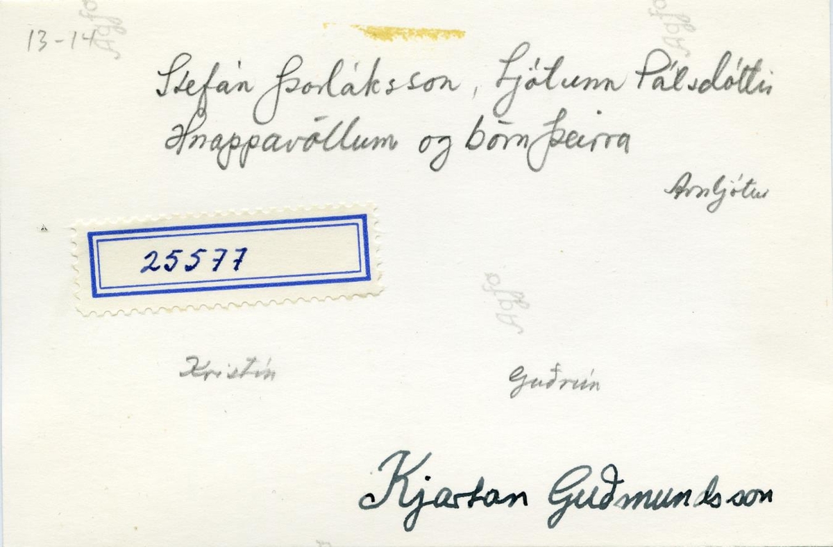 Stefán Þorláksson, Hnappavöllum, kona hans Ljótunn Pálsdóttir og börn þeirra: frá v.: Arnljótur, Guðrún, Kristín. Myndina tók Kjartan Guðmundsson. Ljósm. 11.5x7.5 cm: