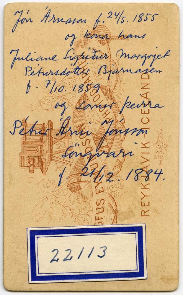 Kona hans og sonur með á mynd Gefandi Unnur Bjarnadóttir,