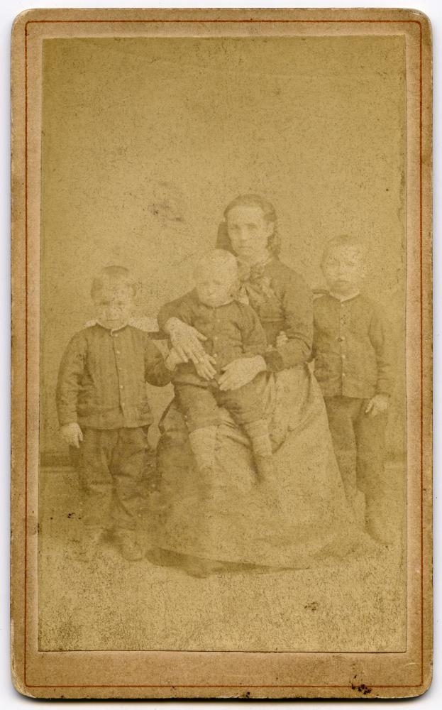 Kona sr. Brynjólfs Jónssonar á Ólafsvöllum og þrír synir þeirra, Jón Jóhann, Bogi og Pétur. Kona sr. Brynjólfs Jónssonar á