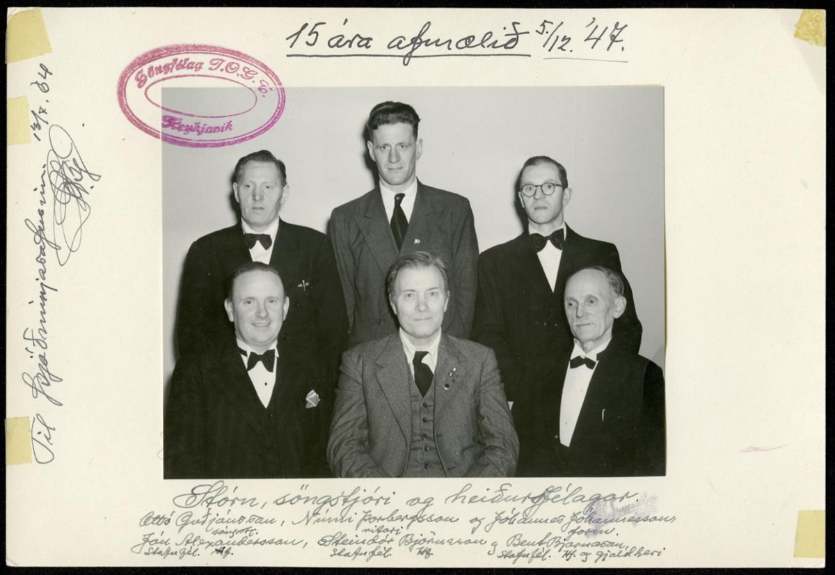 Söngflokkur I.O.G.T. Hópmynd: Söngflokkur I.O.G.T. 1947: Ottó Guðjónsson söngstjóri. Númi Þorbergsson. Jóhannes Jóhannesson. Jón Alexandersson. Steindór Björnsson frá Gröf. Bent Bjarnason.