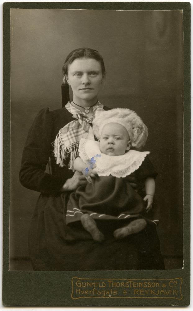 Guðríður Sveinsdóttir, systir Gísla Sveinssonar sýslumanns og sonur hennar, líklega Sveinn Pétursson augnlæknir.