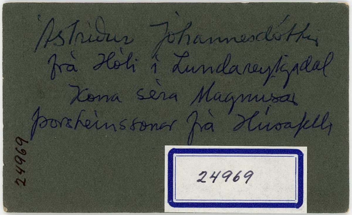 Ástríður Jóhannesdóttir frá Hóli í Lundarreykjadal. Maður hennar var Magnús Þorsteinsson prestur og bankaritari.