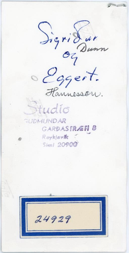 Hjónin Sigríður Dinah Dunn og Eggert Hannesson. Brúðkaupsmynd.