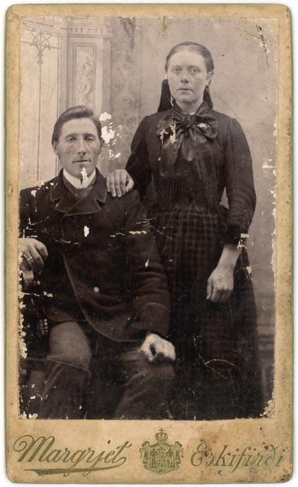 Bjarni Björnsson, Stokkseyri, og kona hans. Vantar frekari upplýsingar.