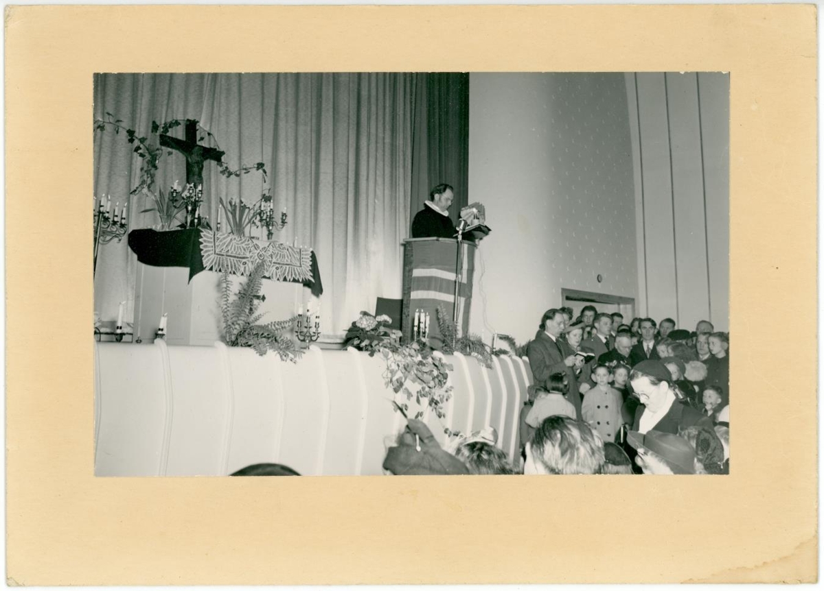 ramma tæpl. 2cm br.: Sr. Emil Björnsson í predikunarstól, líklega við guðsþjónustu