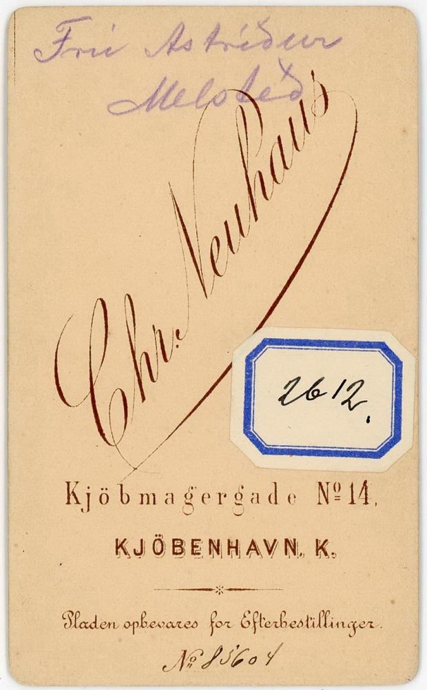 Ástríður Melsteð (f. Helgadóttir Thordersen). Ástríður var tónlistarkennari, hún kenndi á píanó. Maður hennar var Sigurður Pálsson Melsteð guðfræðingur og lektor.
