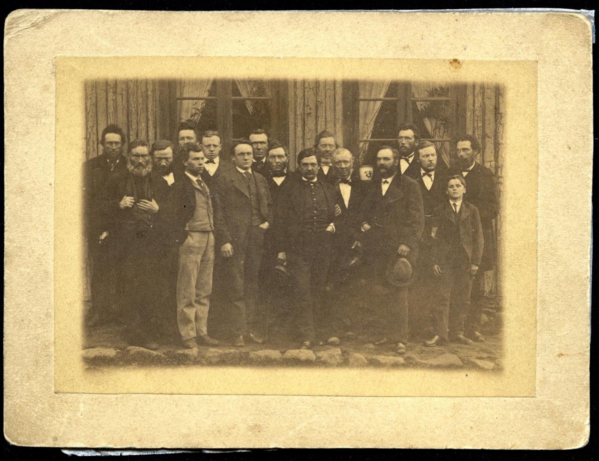 Hópmynd, Þjóðhátíðagestir á Eskifirði 1874: Hjálmar Hermannsson Brekku, Mjóafirði, Sigurður Jónsson frá Gautlöndum, Ásmundur Sveinsson sýslumaður, Ólafur Halldórsson skrifstofustjóri, Kaupmannahöfn, Hermann Hjálmarsson stúdent, Brekku, Mjóafirði, sr. Þorvaldur Ásgeirsson Hofteigi, sr. Halldór Jónsson Hofi, Jón Johnsen Ásmundsson sýslumaður, Eskifirði, sr. Sigurður Gunnarsson eldri, sr. Hallgrímur Jónsson Hólmum, Fritz Zeuthen læknir, sr. Jónas Hallgrímsson Kolfreyjustað, Páll Vigfússon stúdent, Þórarinn (Thor) Tulinius, Carl Tulinius kaupmaður: