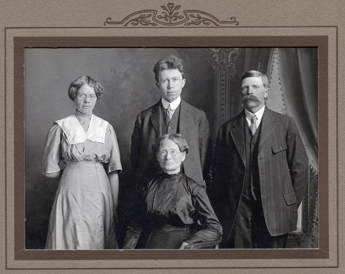 Vilhjálmur Stefánsson landkönnuður, Jóhannes kúreki, bróðir hans, systir þeirra, nafn ókunnugt og móðir Ingibjörg Jóhannesdóttir