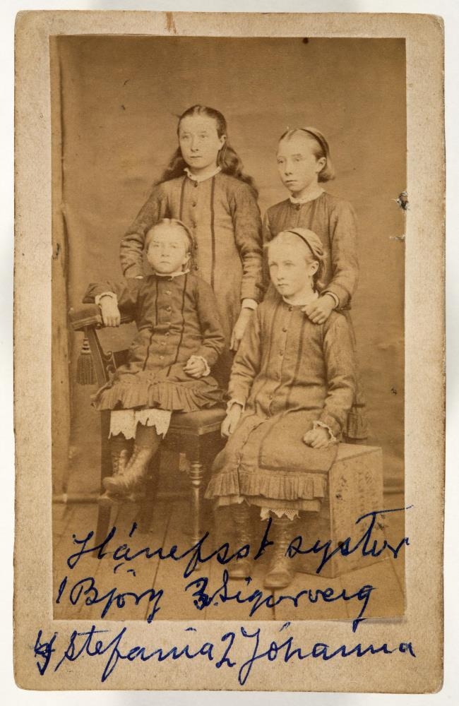 Systur frá Hánefsstöðum N-Múlasýslu: Björg, Sigurveig, Stefanía, Jóhanna, dætur Sigurðar Stefánssonar (1843-1895) og konu hans Sigríðar Vilhjálmsdóttur (1835-1920)
