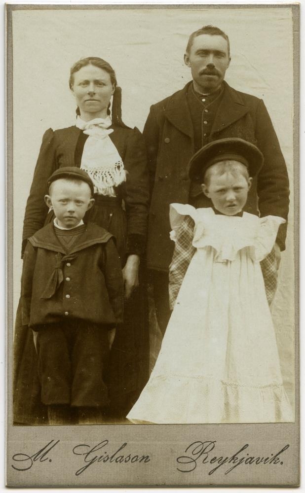 kona hans Geirlaug Jóhannesdóttir og börn þeirra Guðmundur og Katrín