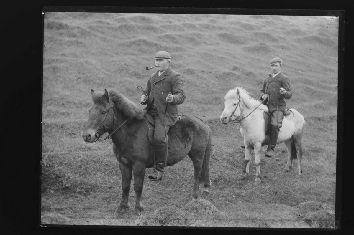 og Loftur bróðir hans, báðir á hestbaki, mynd með kabinett-stærð.