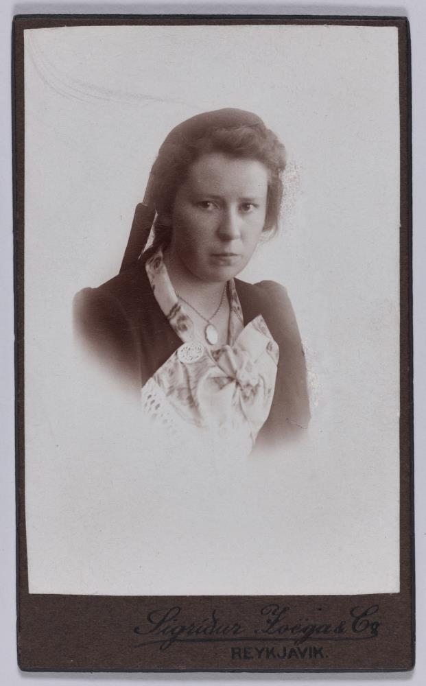 Maður hennar Egill Hallgrímsson frá Minni-Vogum gefandi myndarinnar