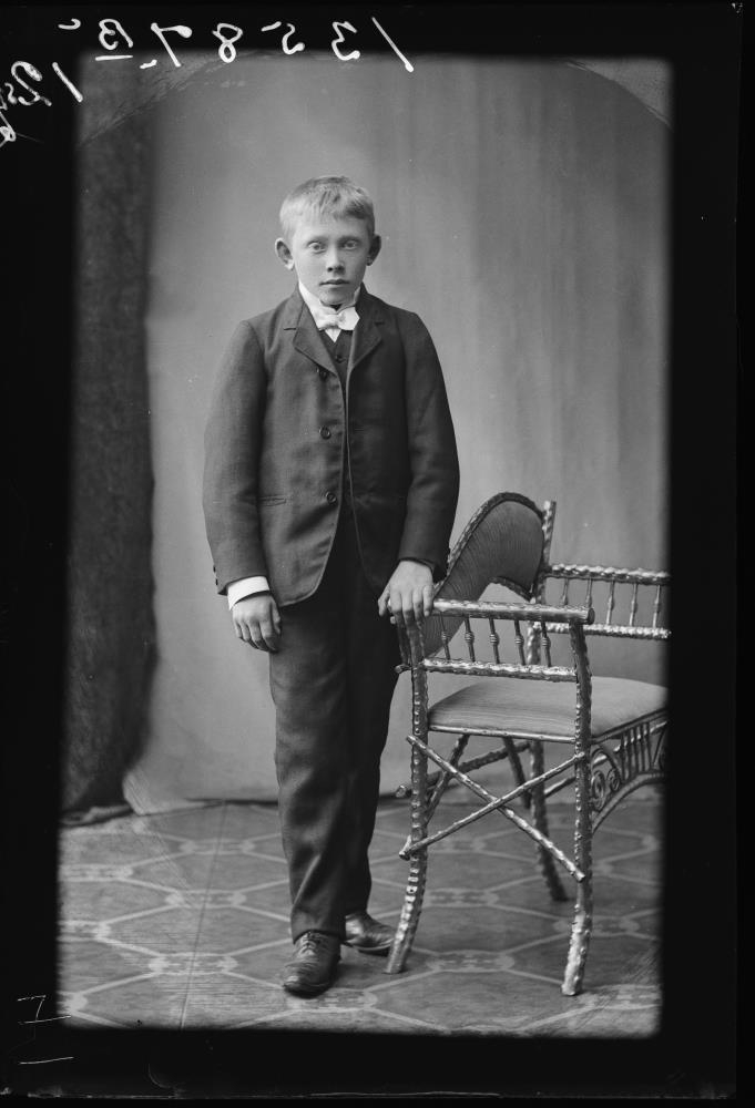 „Þetta er hugsanlega Helgi Erlendsson (1894-1945) sonur Önnu Helgadóttur. Anna býr ásamt Valdimar syni sínum í Kirkjustræti 4 1908. (Hún er vinnukona hjá Gunnari Einarssyni kaupmanni). Það ár er Helgi tökudrengur í Kaplaskjóli í Reykjavík. Anna og Valdimar eru flutt á Norðurstíg 5 1909. Helgi er þá áfram í Kaplaskjólinu.“ (ES 2019)