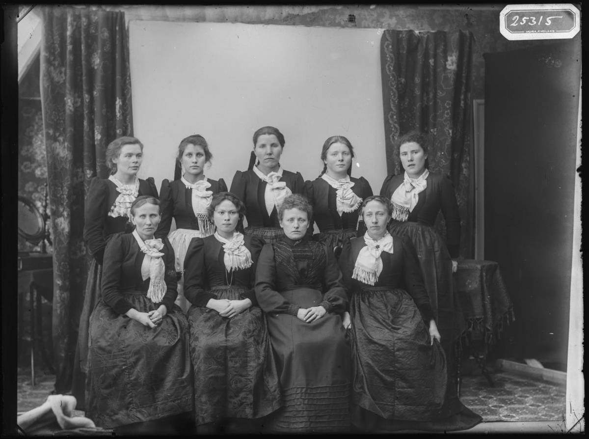 Jónsdóttir (systir Bjarna snikkara). Efri röð: María Brynjúlfsdóttir (ljósmóðir),