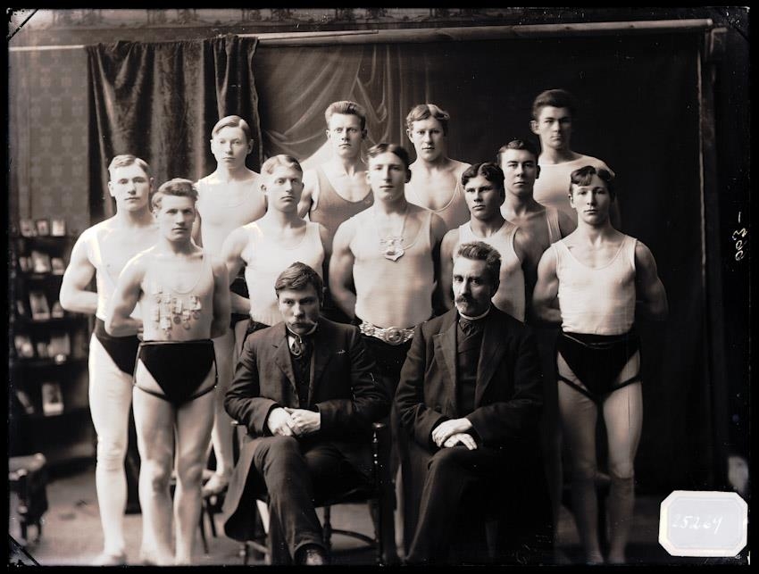 Fremstir sitja Jónatan Þorsteinsson kaupm og Jón alþm. Jónsson í Múla (Glímuflokkur