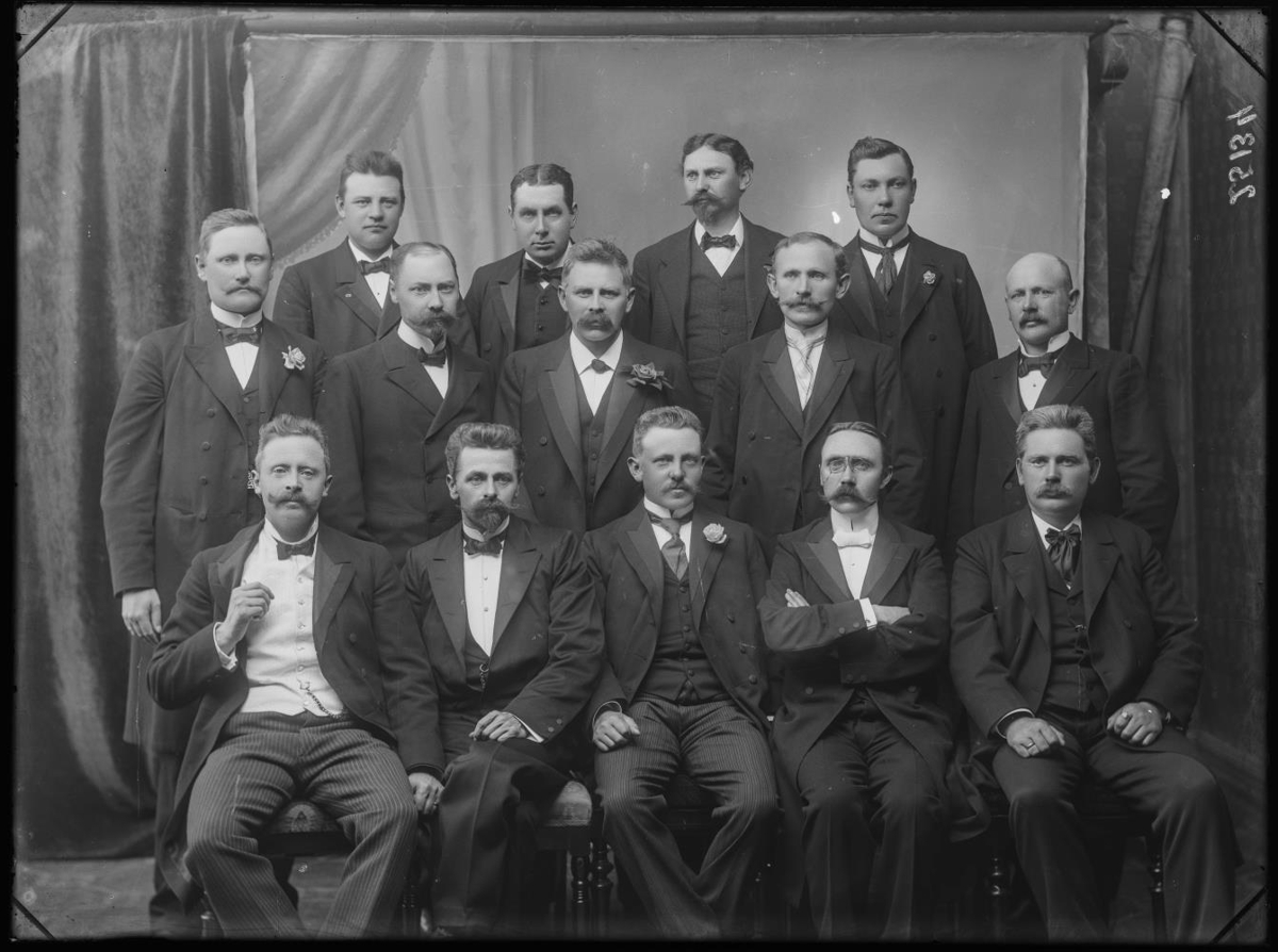 20 ára stúdentar árið 1917: Efsta röð: Eggert Claessen, dr. Ólafur Dan. Daníelsson, Jón Proppé og Árni Pálsson (síðar próf.). Miðröð: sra Gísli Skúlason, Ásgeir Torfason, Einar Gunnarsson, sra Sigurbjörn Á. Gíslason, sra Böðvar Bjarnason. Fremsta röð: Halldór Gunnlaugsson, læknir, Sigurjón Jónsson, læknir, Jón Þorláksson, verkfr., Guðm. Guðmundsson skólaskáld og sra Ólafur Briem Stóranúpi.
