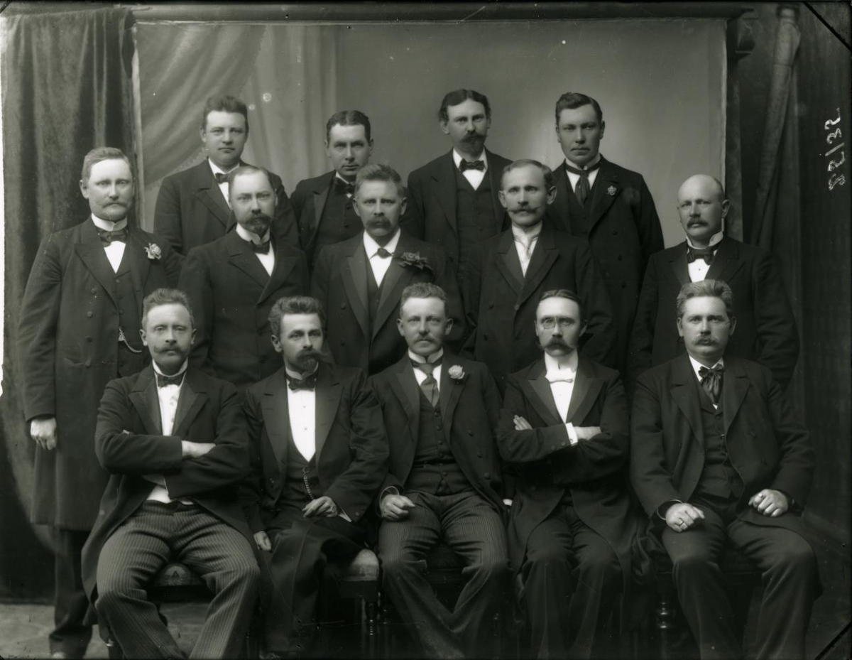 20 ára stúdentar árið 1917 (myndin tekin 1915-16): Efsta röð: Eggert Claessen, dr. Ólafur Dan. Daníelsson, Jón Proppé og Árni Pálsson (síðar próf.). Miðröð: sra Gísli Skúlason, Ásgeir Torfason, Einar Gunnarsson, sra Sigurbjörn Á. Gíslason, sra Böðvar Bjarnason. Fremsta röð: Halldór Gunnlaugsson, læknir, Sigurjón Jónsson, læknir, Jón Þorláksson, verkfr., Guðm. Guðmundsson skólaskáld og sra Ólafur Briem Stóranúpi.