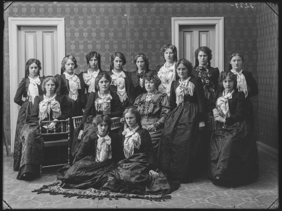„Guðrún Jónsdóttir (1886-1918) saumakona er fyrsta frá hægri í miðröð.“ (GLH 2025)